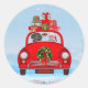 Dachshund Dog In Car With Santa Claus Classic Round Sticker