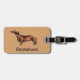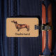 This handsome luggage tag bears the image of a Dachshund dog on one side. The other side has a place for your name, address, and telephone number. The image can also be customised this with your own.