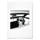 Dachshund dog wearing glasses and riding in car black and white print. AI-generated picture by text to image.