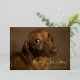 Dachshund Dog with stocking, real gold foil holiday photo greeting card with "Merry Christmas" sentiment. Personalise with an additional message or photos on back of card.