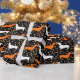 Dachshund Dots White and Orange on Black Halloween Wrapping Paper