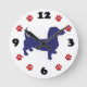 The clock did not take as long to arrive as I thought it might and was extremely well packaged. I didn't do the measurements so I didn't realize it is a little smaller than the average clock but that does not matter (just make sure you check if that's important to you).It is really nifty! It seems very solid and well made not flimsy at all. It has been going well and has kept good time in its few weeks on my wall. Nice product. Gets noticed too! Nicer in real life than the picture but true to the picture