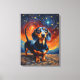 Transform your space with this enchanting Dachshund Canvas Art, featuring a vibrant depiction of a Dachshund set against a mesmerising starry night sky background. This eye-catching canvas print beautifully captures the playful spirit of the doxie dog, making it a perfect statement piece for any Dachshund lover's home. Ideal as a gift for weiner dog enthusiasts or as a unique addition to your own decor, this Dachshund artwork celebrates the charm of the breed while adding a touch of artistic flair to your walls.