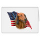 USA! America! Shout your pride with this awesome flag Patriotic background with this AKC dog breed Dachshund in the forefront. Show your pride with this design on a t-shirt, mug, and much, much more!