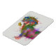 This watercolor print features a colourful portrait of a dachsund in teal glasses adorned in flowers | By Fab Funky
