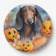 Dachshund Halloween With Pumpkins Scary Paper Plate