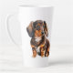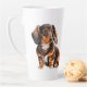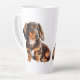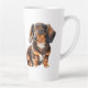A beautifully detailed dachshund illustration decorates a white coffee mug. The design is charming and perfect for dog lovers.