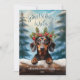 This adorable holiday greeting card features a cute Dachshund Dog illustration wearing a festive crown wreath of winter florals, holly, pine, and berries, with snowflakes gently falling against a Snowy Winter Enchanted Forest Scene. The little Dachshund is peeking over the snow-capped log to say hello! The playful text "Jolly Holiday Wishes" adds a warm seasonal greeting, and can be customised as you like. The reverse side is decorated with a classic plaid check, adding a traditional touch to the overall design. This cute, playful card is perfect for sending holiday cheer to family and friends, and the customisable name and date make it a personalised keepsake.