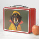 This is a standard metal lunchbox that appears to work just fine. We designed this box ourselves with an uploaded photo and custom text on the front and back. It looks absolutely beautiful except the front of the lunchbox is not centered like it shows in the photo. The print borders don't align with the inset flat part of the box where the preview photo online showed it perfectly centered in there. The back looks nice and centered though.