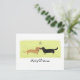 A cute Dachshund Christmas postcard. Black and tan longhaired Doxie and red short haired Dachshund. A wiener dog’s kiss under the mistletoe. An original cartoon weenie dogs art illustration by ©Jenn Inashvili. Visit Jenn’s Doodle World for holiday gifts with this cute Daschund design and more weiner dog holiday cards.