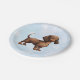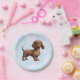 Paper plates featuring a Dachshund dog with a blue background.  These paper plates are perfect for dog themed parties and events or for anyone who just loves Dachshunds.   generativecontent