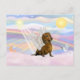A brown Dachshund tries out their wings among heaven's fluffy clouds before they are free to enter Rainbow Bridge where angels and friends await.l