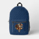 A series of cute puppies unzipping on the front pocket of these backpacks done up with a denim cloth like design