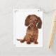 Brighten someone's day with handwritten note! This fun canine postcard features an image of a reddish brown Dachshund puppy dog highlighted against a crisp white background.