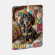 A cute Dachshund ornament that you can add a  personalised custom message on the back. The front has a cute puppy dog sitting on a quilt on the couch.