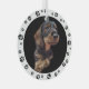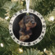Cute dog lover's ornament with a dachshund puppy photo and dog paw prints frame. Black paw prints on white background. Click Personalise This Template to replace the doxie puppy photo with your own Instagram puppy photo and create your own unique one of a kind design. A lovely personalised gift for puppy lovers! If you want to edit more you can replace some paw prints with custom text or puppy name.