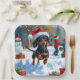 Dachshund Running in Snow with Christmas Hat Paper Plate