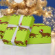 This bright Christmas wrap stars the humble dachshund sporting a rather nifty looking Santa hat. Perfect for any doxie lover or dog lover in general.