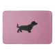 A black dachshund silhouette on pink bath mat that is PERFECT for anyone and any bathroom! Show your love for your canine companion with this stylish bath mat!