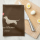 Shorthaired Dachshund Silhouettes Facing Each Other with Heart and Custom Text. Personalise this custom design with names of the bride and groom, wedding date, or your best wishes for the happy couple. Makes a great gift for bridal showers, weddings and milestone anniversaries. A decorative kitchen towel for wiener dog lovers. Visit Jenn’s Doodle World for even more Doxie designs and animal themed wedding favours and gifts.