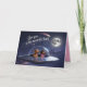 A dog Valentine's Day card featuring a Dachshund couple in a flying saucer going to the moon.