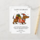 Send a bundle of holiday fun with this irresistibly funny Dachshund Christmas card! This adorable illustration features a cheerful Dachshund wearing a Santa hat and a festive sweater, hilariously transporting a stack of wrapped Christmas gifts on its back. This whimsical and unique card is perfect for Dachshund owners and dog lovers who want an unforgettable, joyful greeting to spread peace, laughter, and warmth this holiday season.