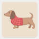 Dachshund Wiener Dog Red Plaid Sweater on Beige Square Sticker