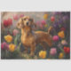 Bring a touch of springtime charm to your crafts with this adorable decoupage tissue paper featuring a dachshund surrounded by vibrant tulips. The soft, painterly details and cheerful colours make it perfect for DIY projects, seasonal decor, and pet-themed creations.