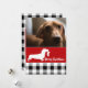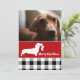 Buffalo plaid in black and white and bright festive red holiday photo card for your favourite family or pet holiday photo. This cute Dachshund dog is holding a stocking with a simple Merry Christmas greeting and is perfect for dog lovers and family photos. Text is completely editable so feel free to add your own personal greeting.