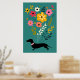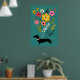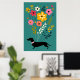 Dachshunds and Flowers Vintage Retro Floral Poster