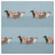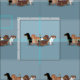 This artwork features a group of four cute cartoon dachshunds standing together. The dogs have a variety of different hair colours. The cartoon illustration is perfect for those who love dogs and cartoons.