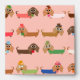 Dachshunds on Pink, an adorable dog design that dog lovers, especially Dachshund lovers, will find too cute to resist! Features Dachshunds in sweaters of chocolate brown, green, blue, coral, pink, and white, some wearing eye glasses, some with bows or even top hats! This cute dachshund design is available on bags, pillows, compact mirrors, watches, mousepads, pillow poufs, electronics cases, wallets, notebooks, clipboards, bibs, pacifiers, ties, and much more!