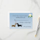 Cute dogs wedding response RSVP card done in blue, with adorable silhouette graphics of a brown and a black dachshund kissing, in the bottom left corner and a single white daisy in the upper right corner. Customise the fun curly text to suit your needs.