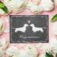 White Dachshund bride and groom silhouettes with heart. A chalkboard style wiener dogs greeting card for the happy couple. This fun congratulations card for the new Mr. and Mrs. can be personalised with your own special greeting. An original wedding congrats card for Doxie lovers getting married.