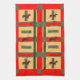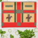 Dachsund Kitchen Towel - Muted red, brown and green make up the design with a "whiff" of dachsunds planted into the towel design.