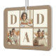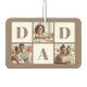 Give Dad a gift he'll cherish. This photo collage air freshener features three of his favorite square family photos, along with the chunky brown letters "D-A-D" in alternating white squares on a brown background. An ideal gift for Father's Day, Dad's birthday or other special occasions.