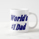 Mug with World's #1 Dad in 3D dark blue text. Mug available in several styles and colours.