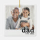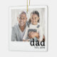 Simple Dad Personalised Classic Christmas Ornament. Celebrate fatherhood with this minimalist ornament featuring a single photo and the word “dad” in a clean serif font across the bottom for a classic, understated look. A white band runs along the bottom where the text overlaps the photo for a sleek finish.