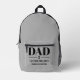 Dad Established Year Names Modern Script Printed Backpack. Customize with the year of becoming a dad, add more years for more children. Change the number for the number of children. Add the names of the children. Modern fun saying in a trendy script design that dad will love to use! Contact the designer for any customization questions.