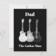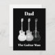 Whether your Dad is a guitarist with exceptional skill or an air guitarist with dreams this funny guitarists card is for him. Cool black and white monochromatic simple illustrations of three semi acoustic guitars in slightly translucent off white, grey and black hues. The words ‘Dad the Guitar Man’ can be customised using the template to create a personalised card for your musical Dad on Father’s Day. Minimalistic musical instruments illustrations created by artist Catherine Sweetman