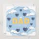 Happy Father's Day cute design, dad i love you yellow text, white clouds and blue hearts in the sky, 3d paper cut cartoon