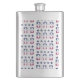 The product is a good size and came exactly as it was pictured. The lid is not attached to the flask, which could be dangerous on drunken nights... The print came out surprisingly well and looks very sharp. Would definitely recommend.