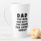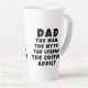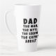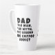 Dad Man Myth Legend Coffee Addict Funny Father's Day Latte Mug. Funny Father's day mug with humourous quote ' Dad, the Man, the Myth, the Legend, the Coffee Addict '. The text is in modern bold black typography. You can change any text on the mug.