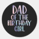 Dad of the Birthday Girl Tie Dye Colourful Bday Classic Round Sticker