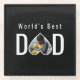Dad Photo in Black Heart Frame Modern Text Glass Coaster