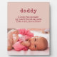Adorable baby photo easel for you to personalize with your own photo. The easel has cute wording which reads "Daddy I love you so much my heart could explode into a million kisses". The template is set up for you to add your photo and edit as much of the wording as you wish - for example you might prefer to say Dad or Papa. The design has a muted pink background with dark cherry red typewriter style typography.