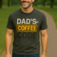 ✔ Matte off-white “Dad’s” with a coffee cup icon forming the apostrophe ✔ Neon amber “Coffee” with glowing backlight—like a keyboard key ✔ Deep slate “Code” featuring a subtle fabric weave texture ✔ Binary code (0101) beneath “Code” for that perfect tech touch ✔ Recommended Shirt Colour: Heather Charcoal – best contrast for neon highlights!