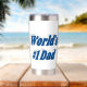 Tumbler with World's #1 Dad in 3D sea blue text.