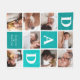 Customise this unique blanket with 8 square photos arranged in a grid collage layout. Featuring "Dad" going diagonal on ombre teal squares and additional square on the bottom for a custom message. Keep "we love you" as is or change to your custom endearment. All colours can be changed. These are Father’s Day gifts that are perfect for any dad. A gift that he will treasure for a lifetime! Can be customised for any moniker - papa, pépé, grandad, grandpapa, grand-pére, grampa, gramps, grampy, geepa, paw-paw, pappou, pop-pop, poppy, pops, pappy, nonno, opa, baba, abuelo, tutu, saba, lolo etc.).