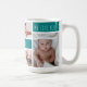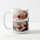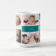 Personalised mug for dad or granddad featuring photo collage of 5 photos on a teal background and ''dad we love you'' in modern font. To edit this template click customise further.